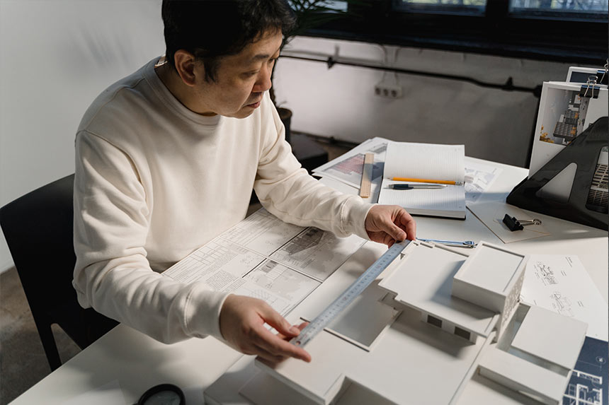 The whimsical feel of Villa Esther begins with the Neo-Modern gateway in the style of Le Corbusier’s Villa Savoye.
